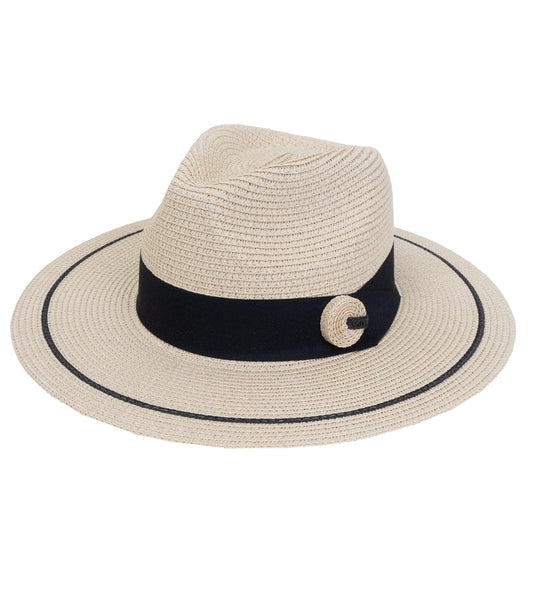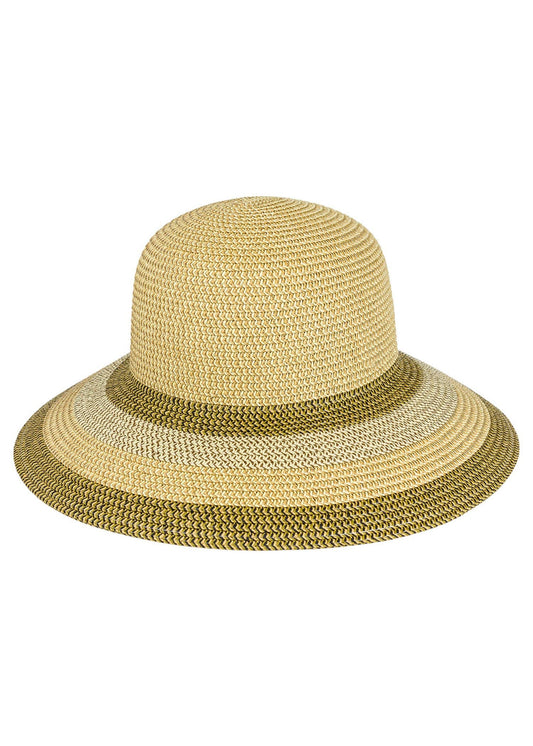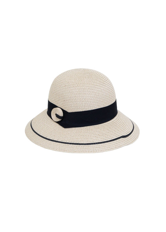 Magid Summer Paper Straw Two-Tone Bucket Sun Hat with Bow on Crown