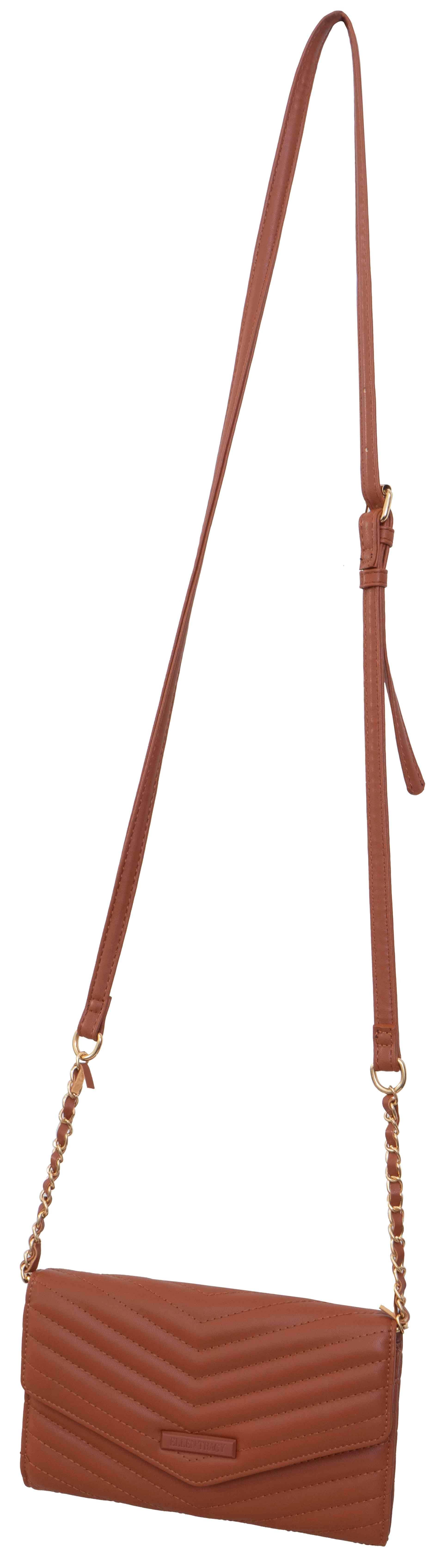 Elevate your evening ensemble with the Ellen Tracy Smooth Chevron Quilted Phone Case & Wallet on Chain Crossbody. This versatile accessory seamlessly combines style and functionality, making it the perfect choice for a sophisticated night out.