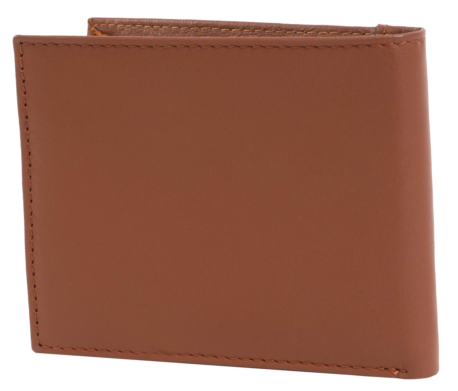 Jack Abrahams Goat Nappa Leather Bi-Fold Top Front Wallet Cognac/Black