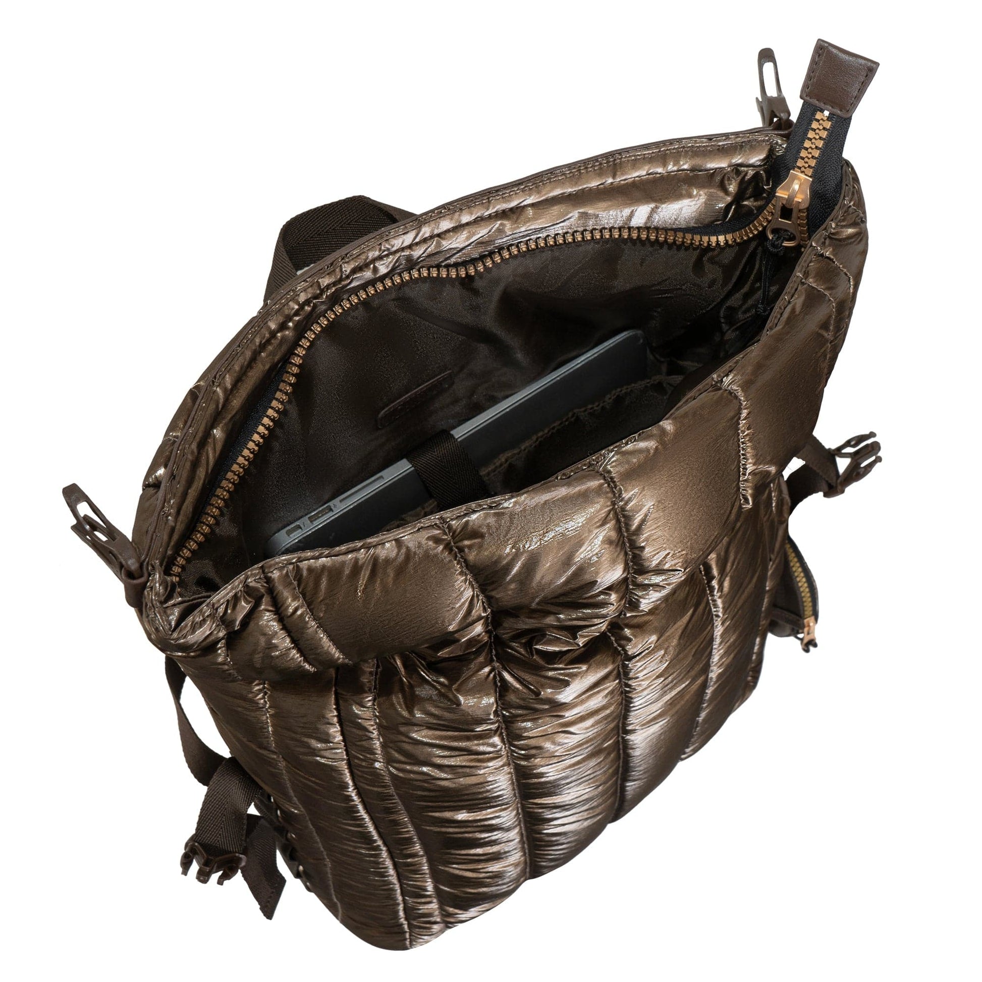 Joan & David Tubular Quilted Metallic Puffer Nylon 18-Inch Workbook Backpack