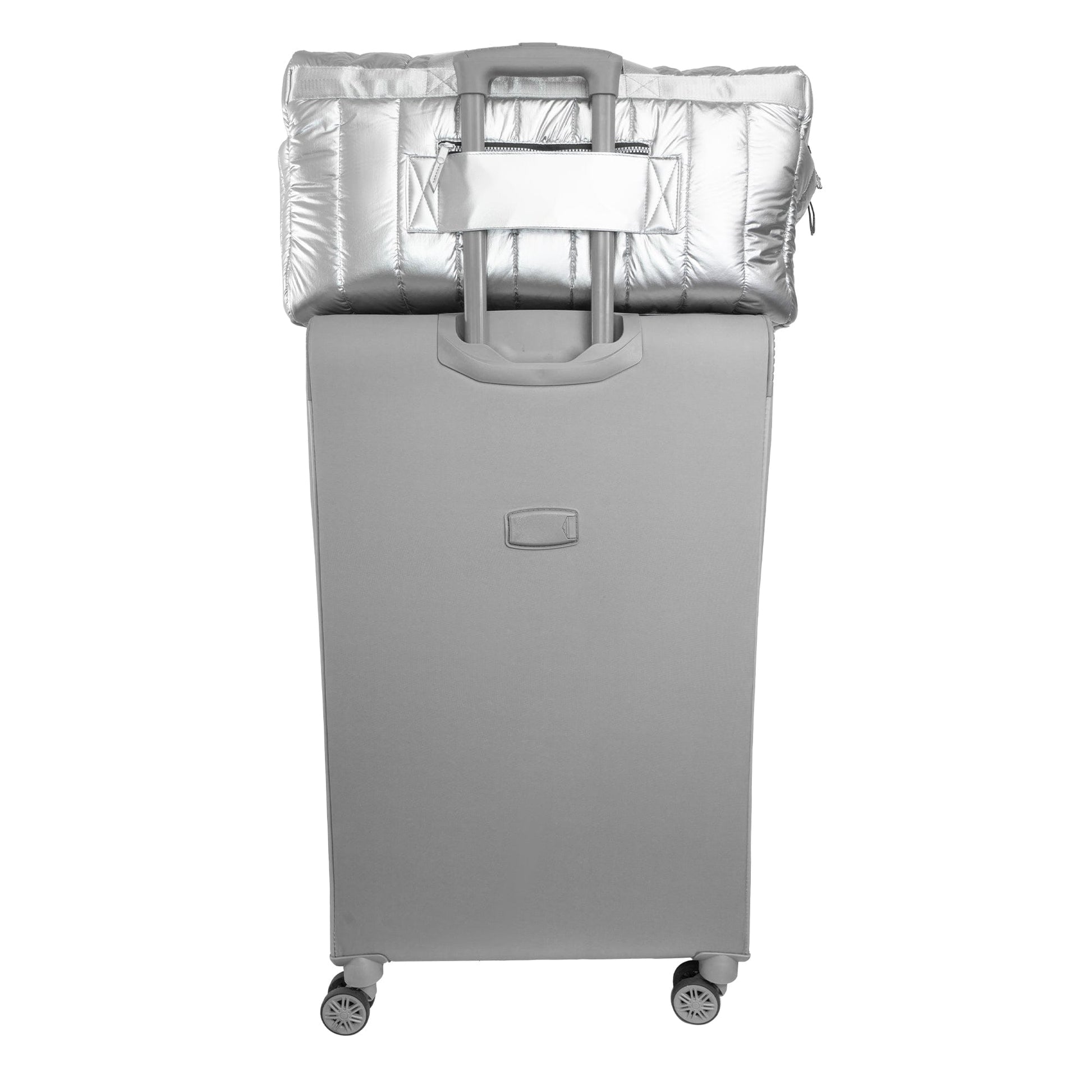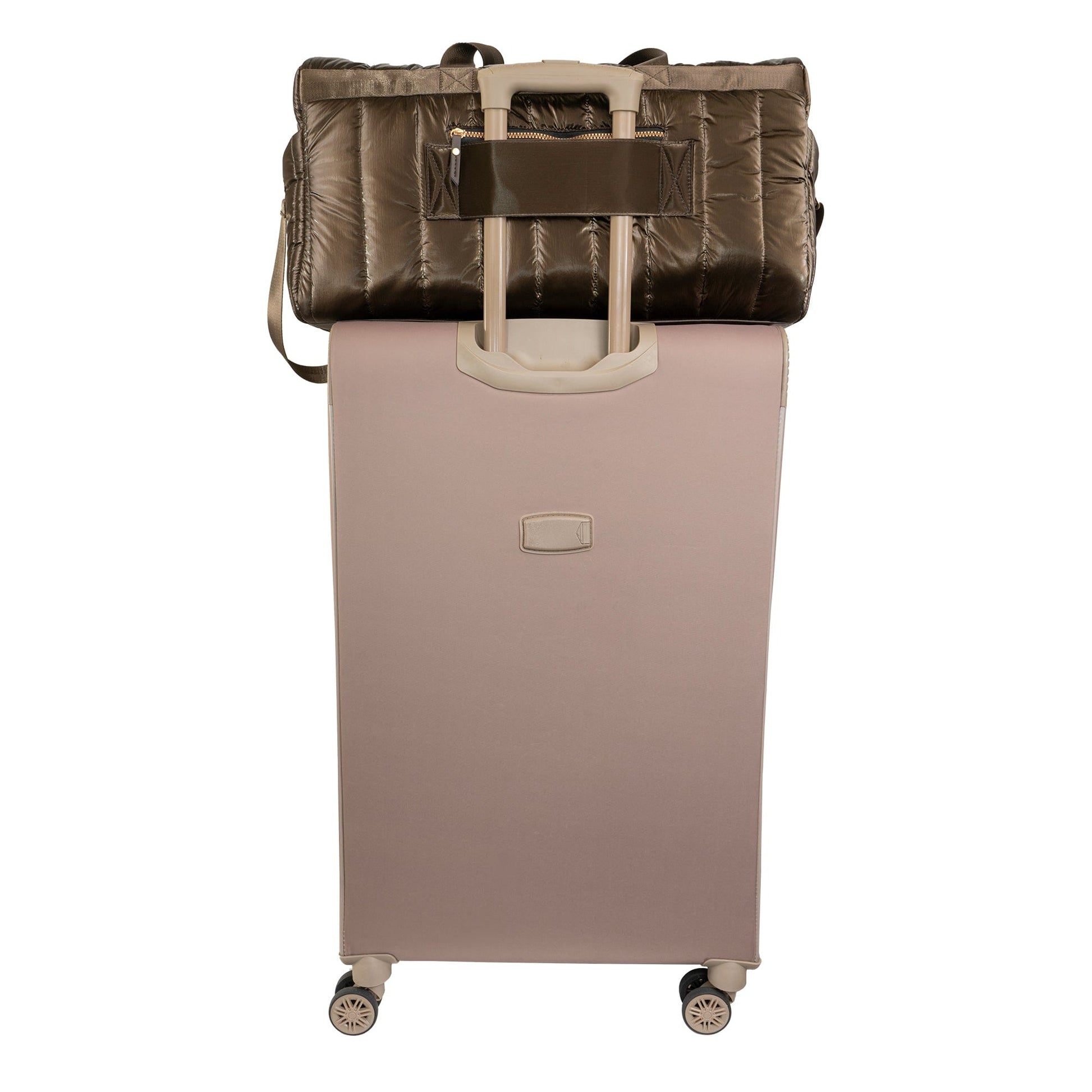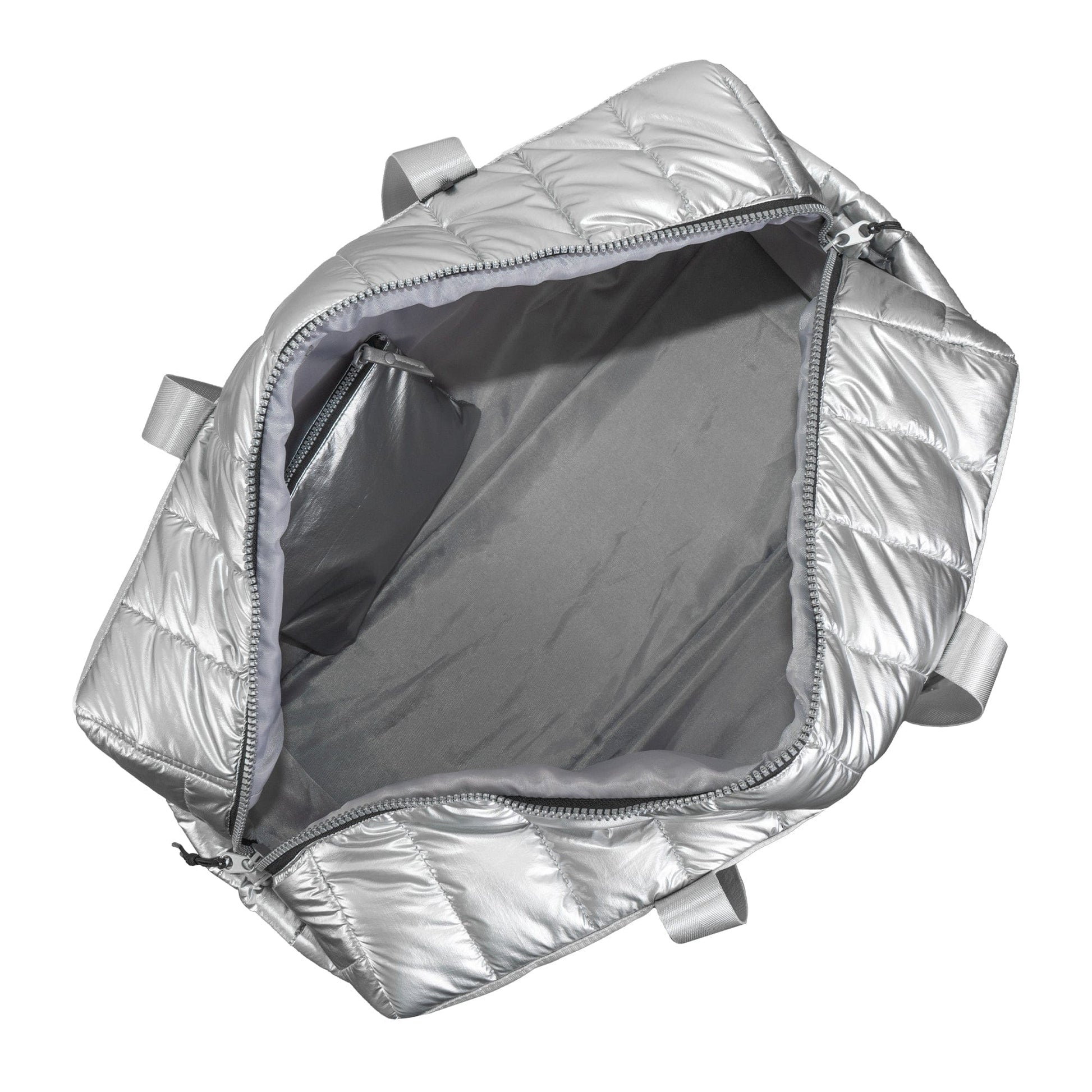 Joan & David 22" Metallic Puffer Tubular Quilted Nylon Travel Weekender Duffel