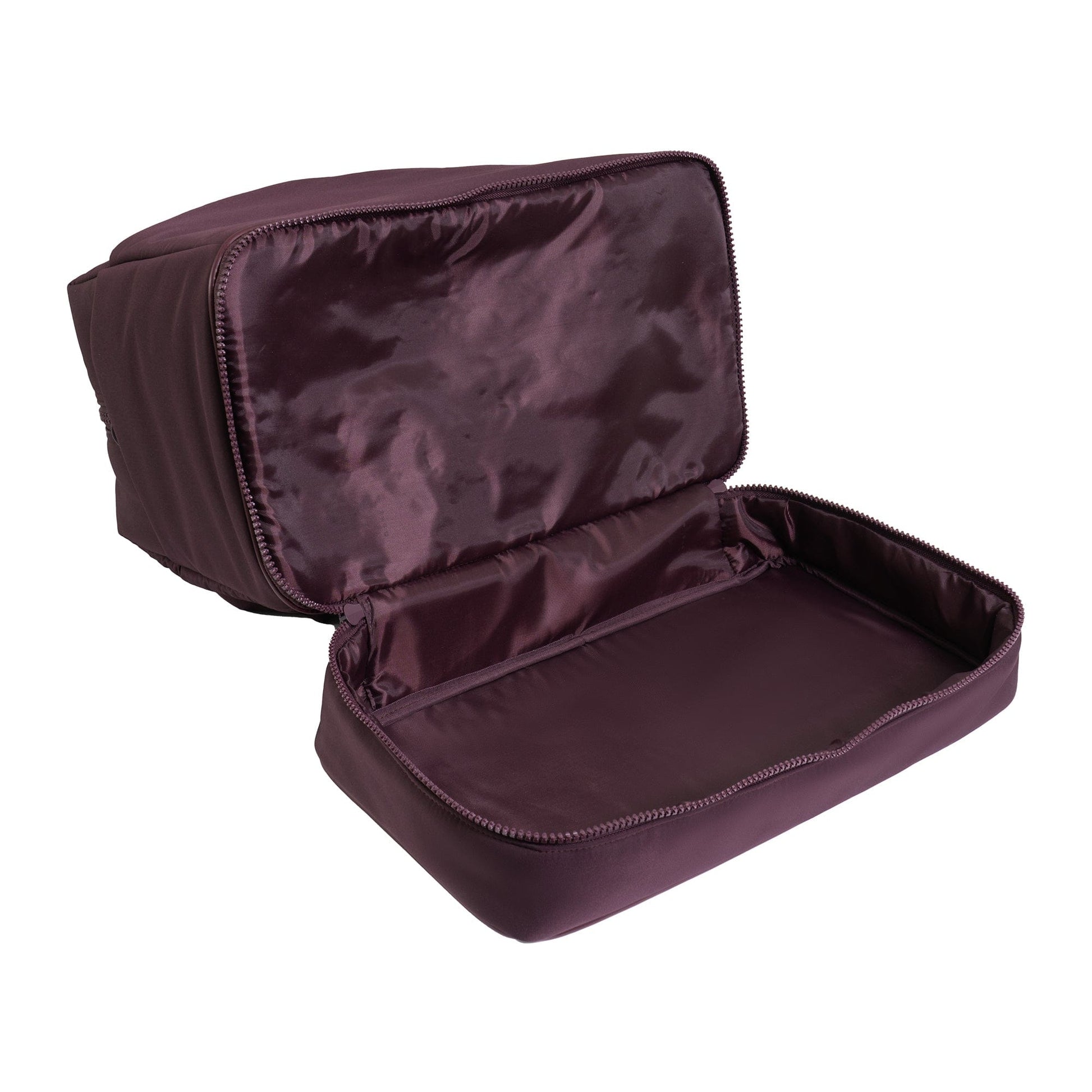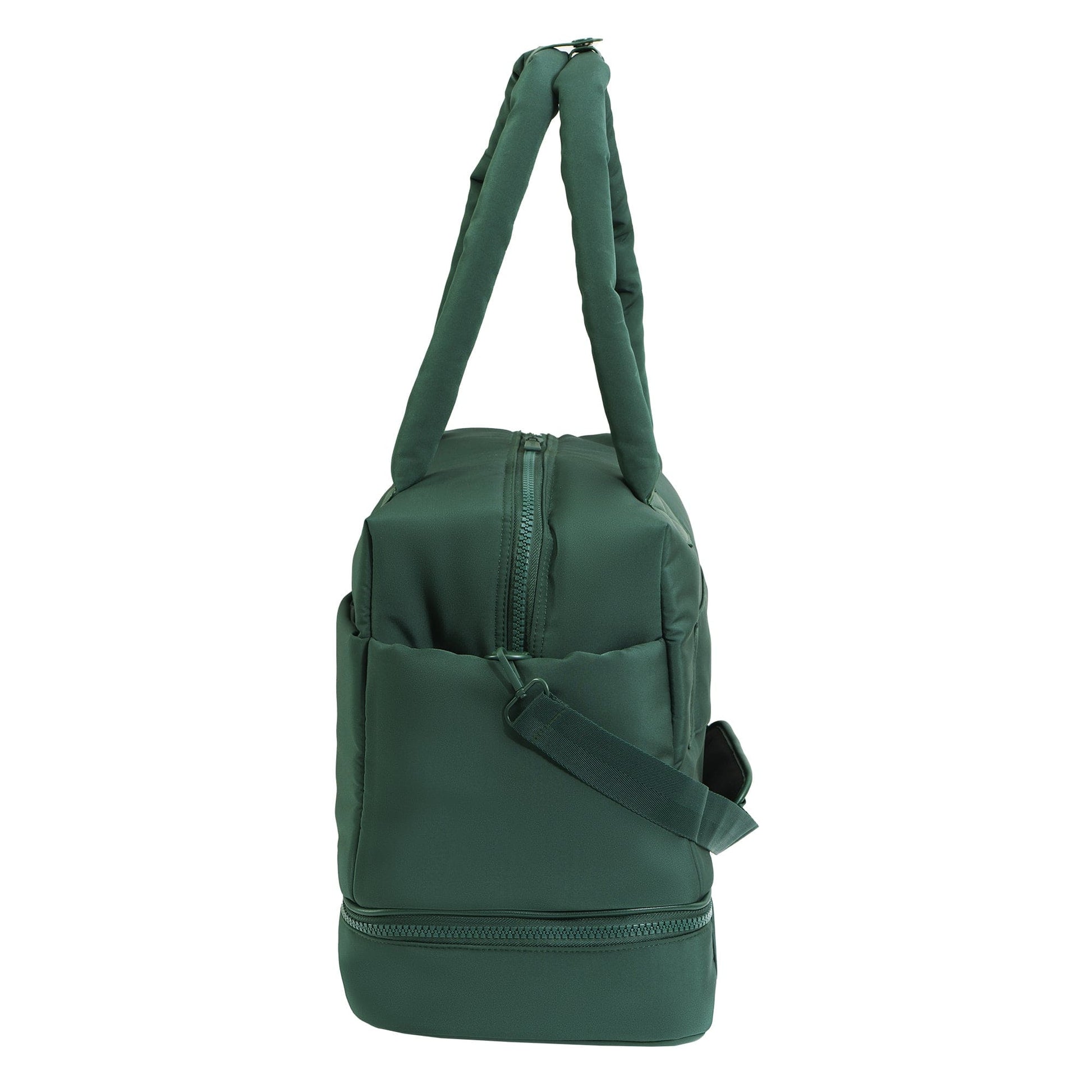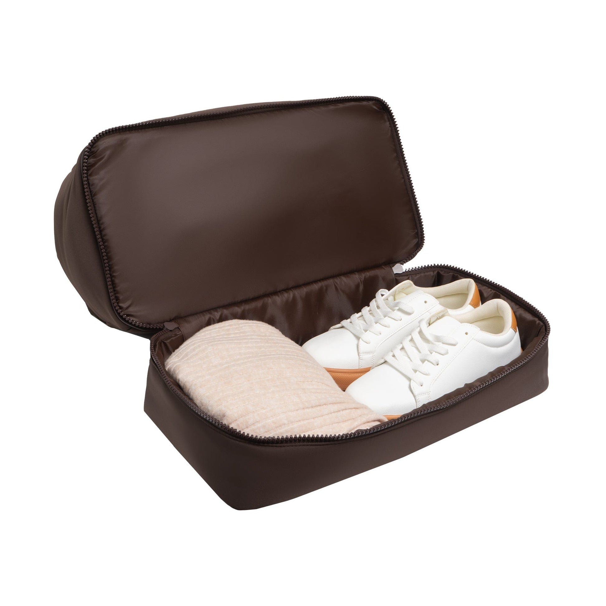 A separate bottom zip compartment offers convenient storage for shoes, laundry, or larger accessories—keeping clean and used items neatly divided. -