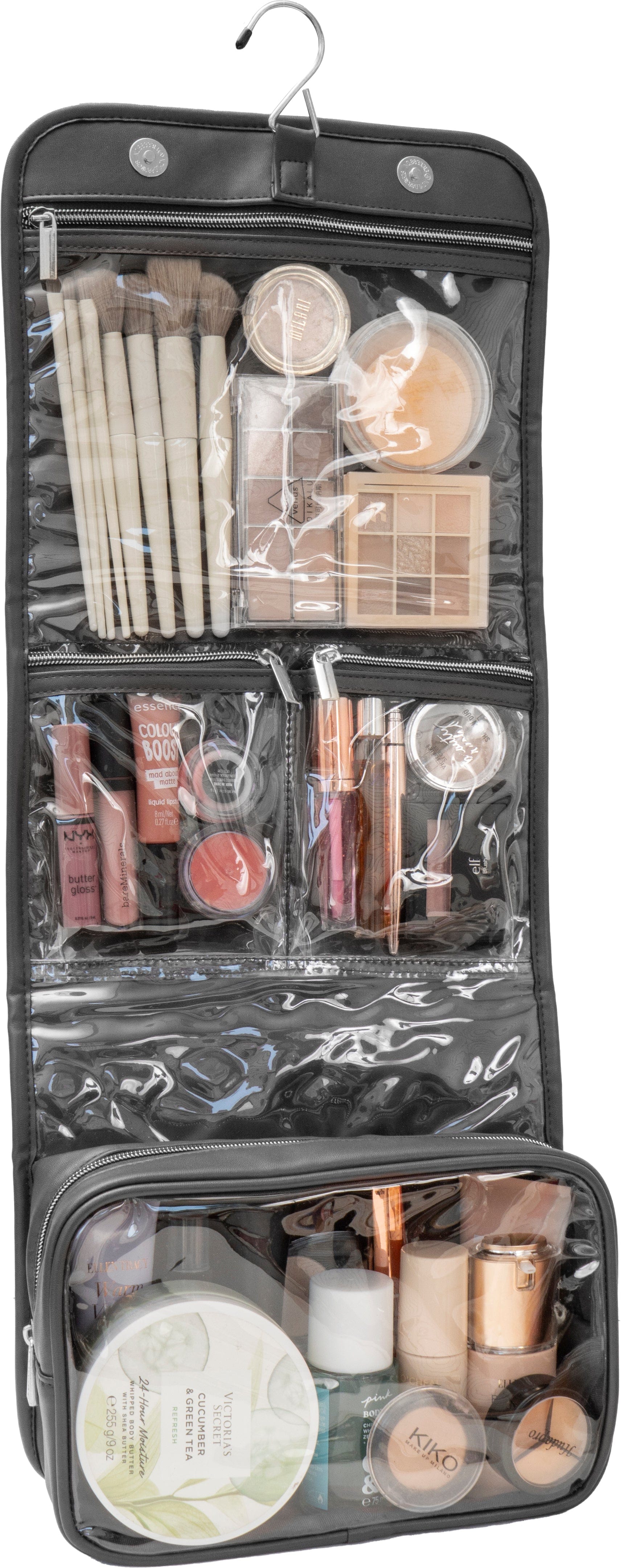 • Clear Interior Zipper Compartments: Transparent pockets allow you to easily find and access toiletries, makeup, or grooming tools.