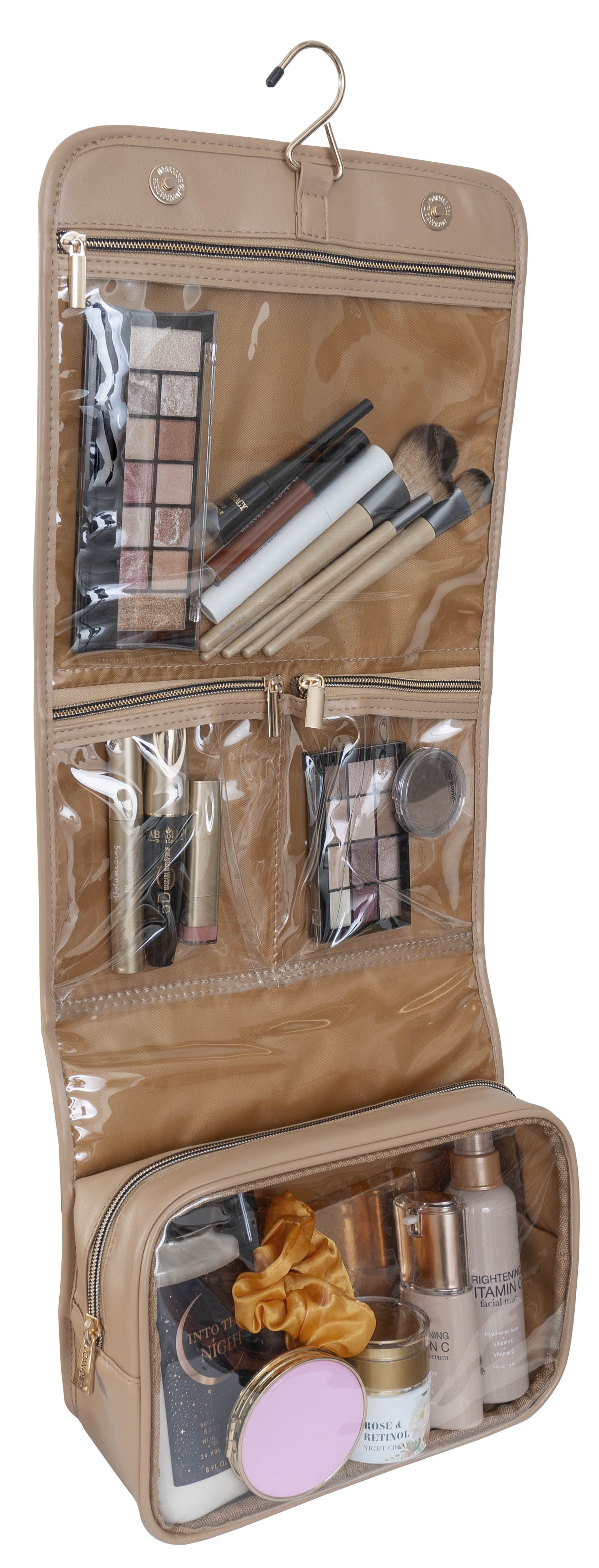 • Hanging Hook: Built-in hook lets you hang the bag on towel racks, doors, or closets to save counter space.