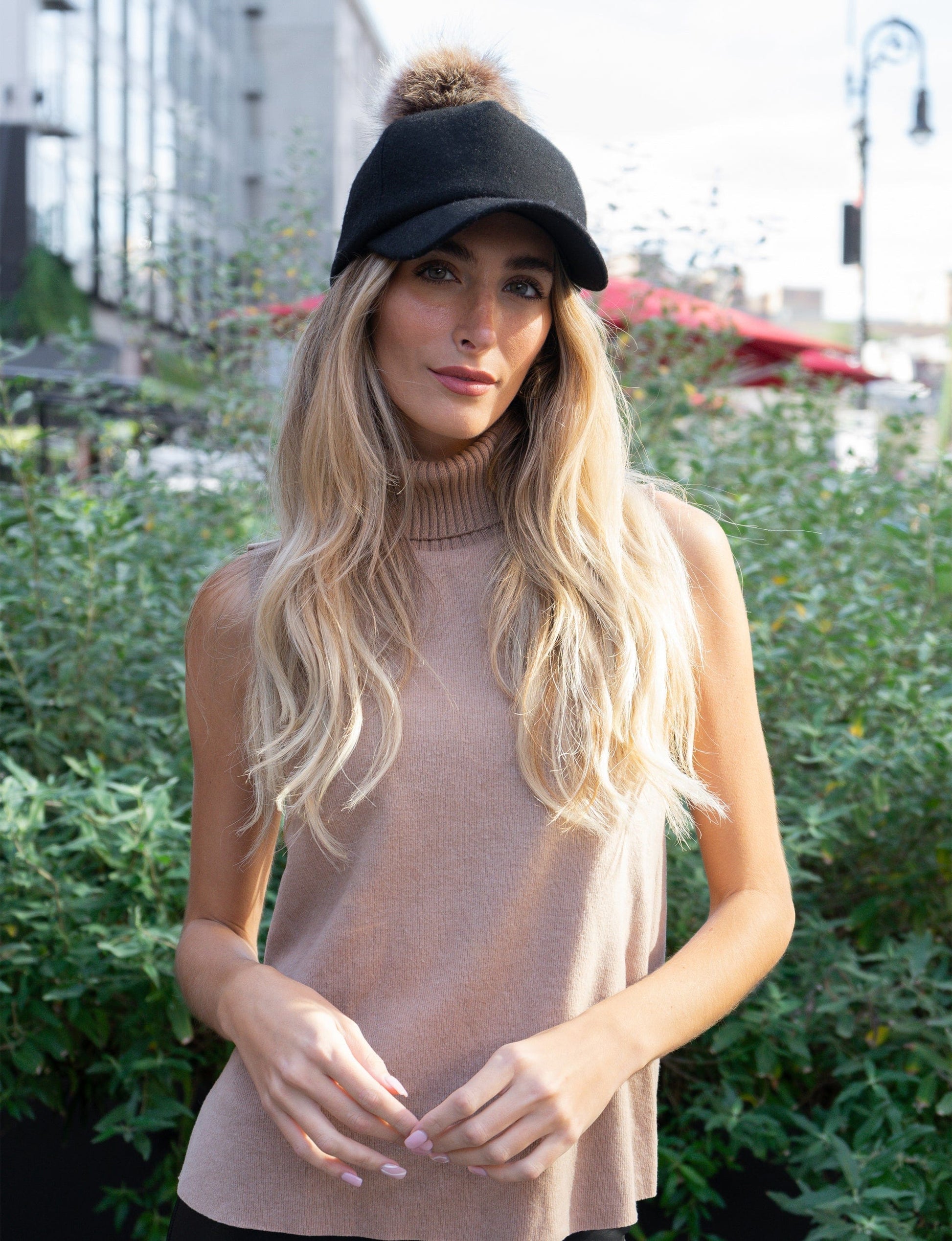 Faux Fur Pom Pom Accent: - Soft, plush faux fur pom pom adds a fun and cozy touch to the cap.