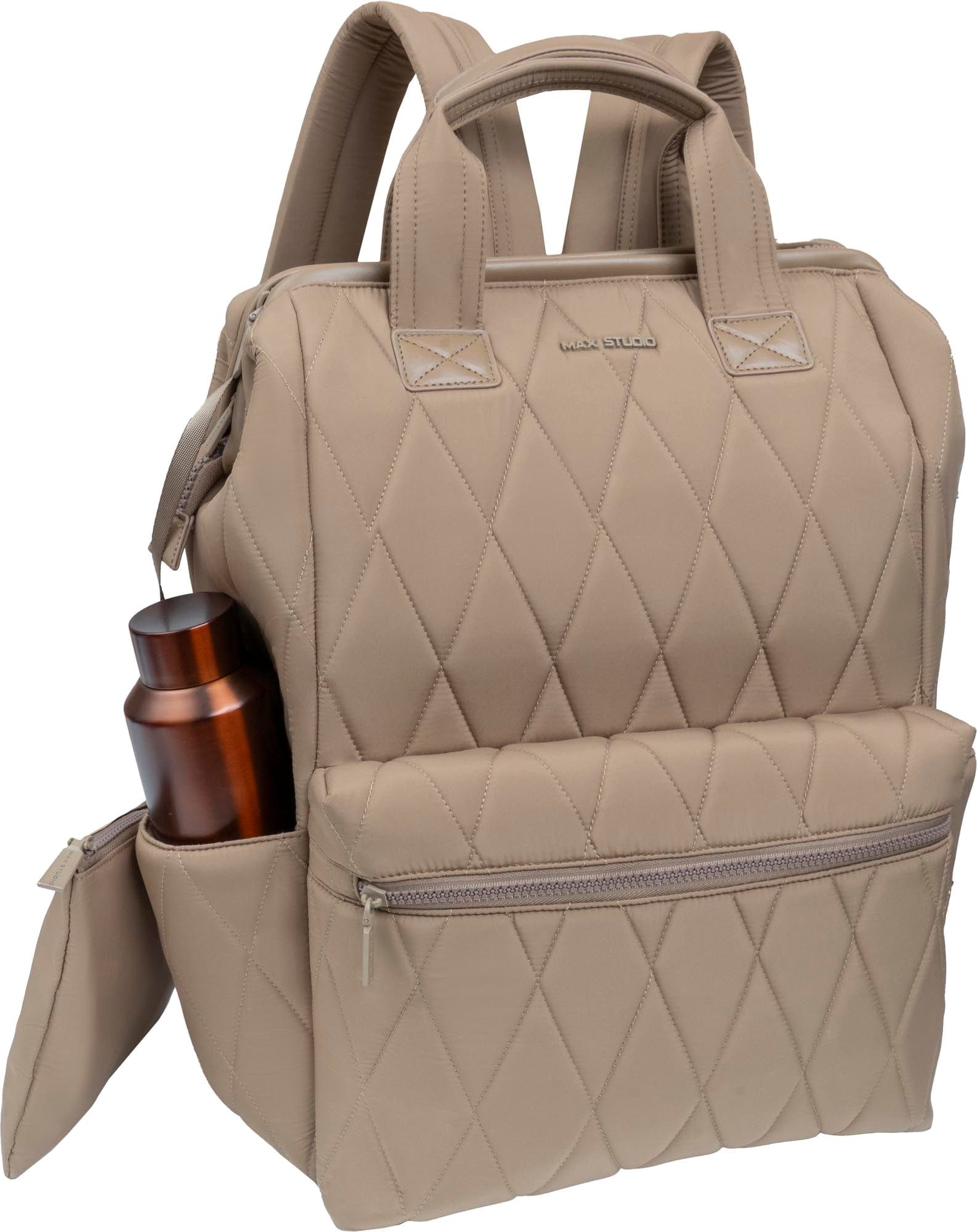 Max Studio Diamond Quilted Nylon Backpack with Front Zippered Pocket