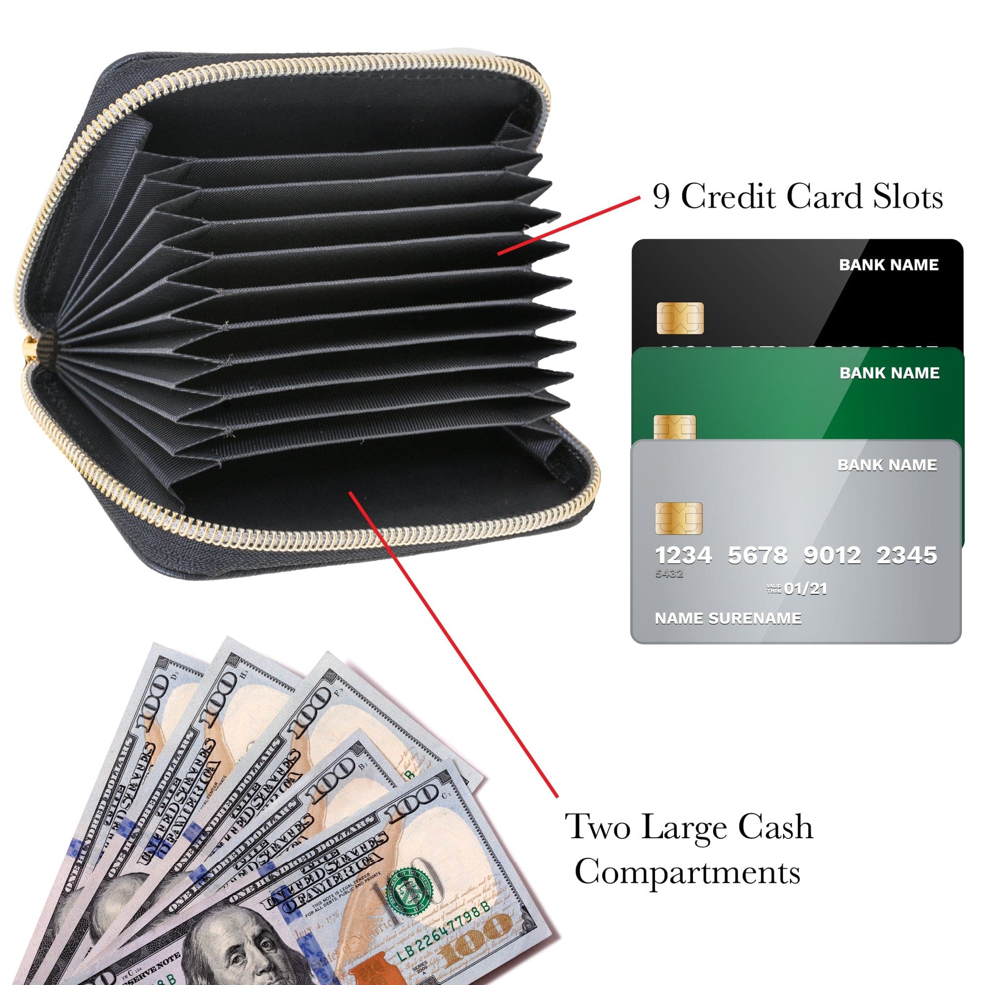 • Spacious Cash Compartments – Keeps your bills, receipts, and essentials neatly arranged.