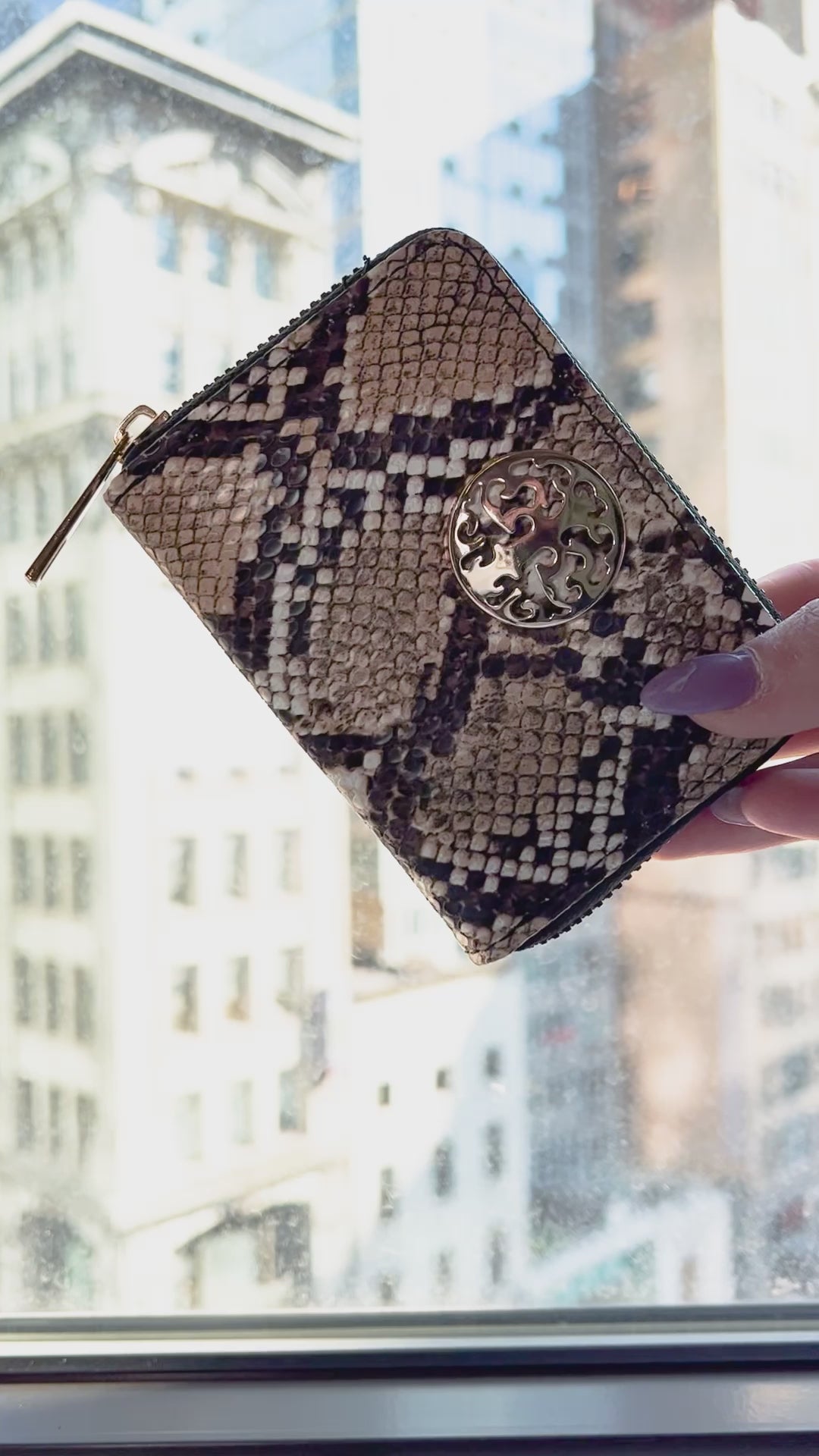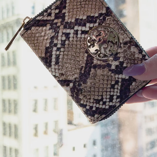 Rebecca & Rifka Snake Animal Print Medallion Zip Accordian Wallet