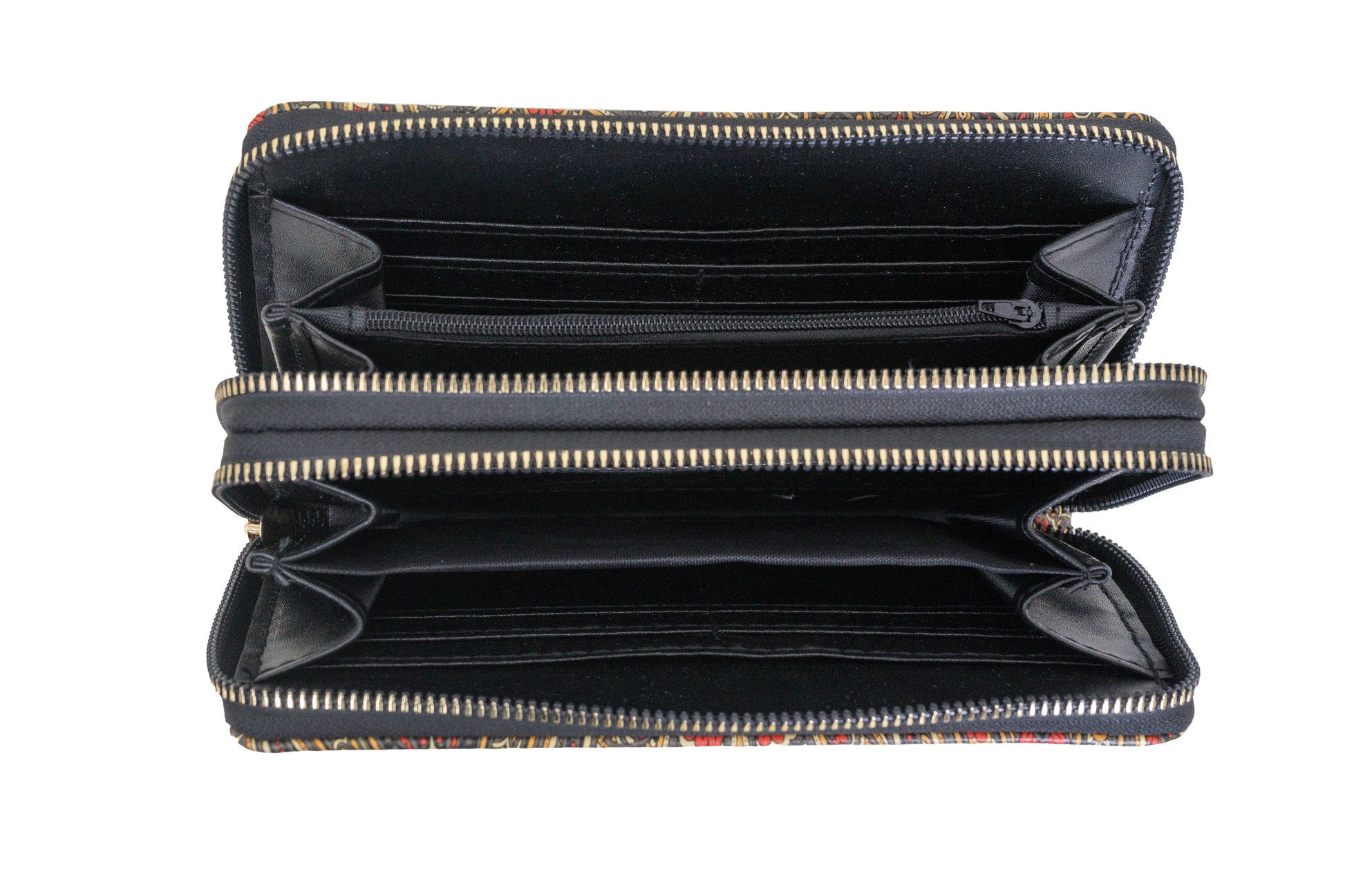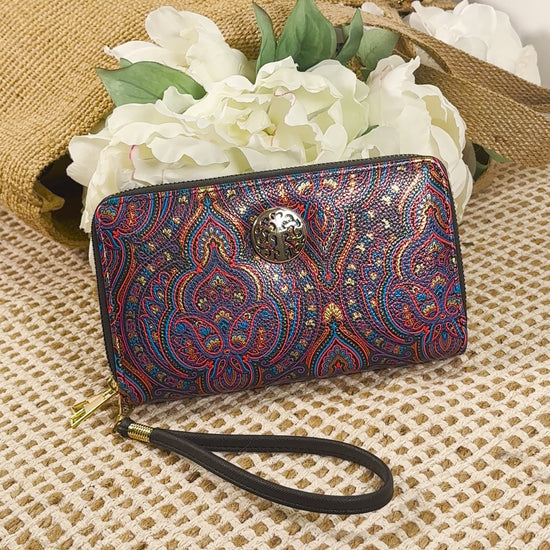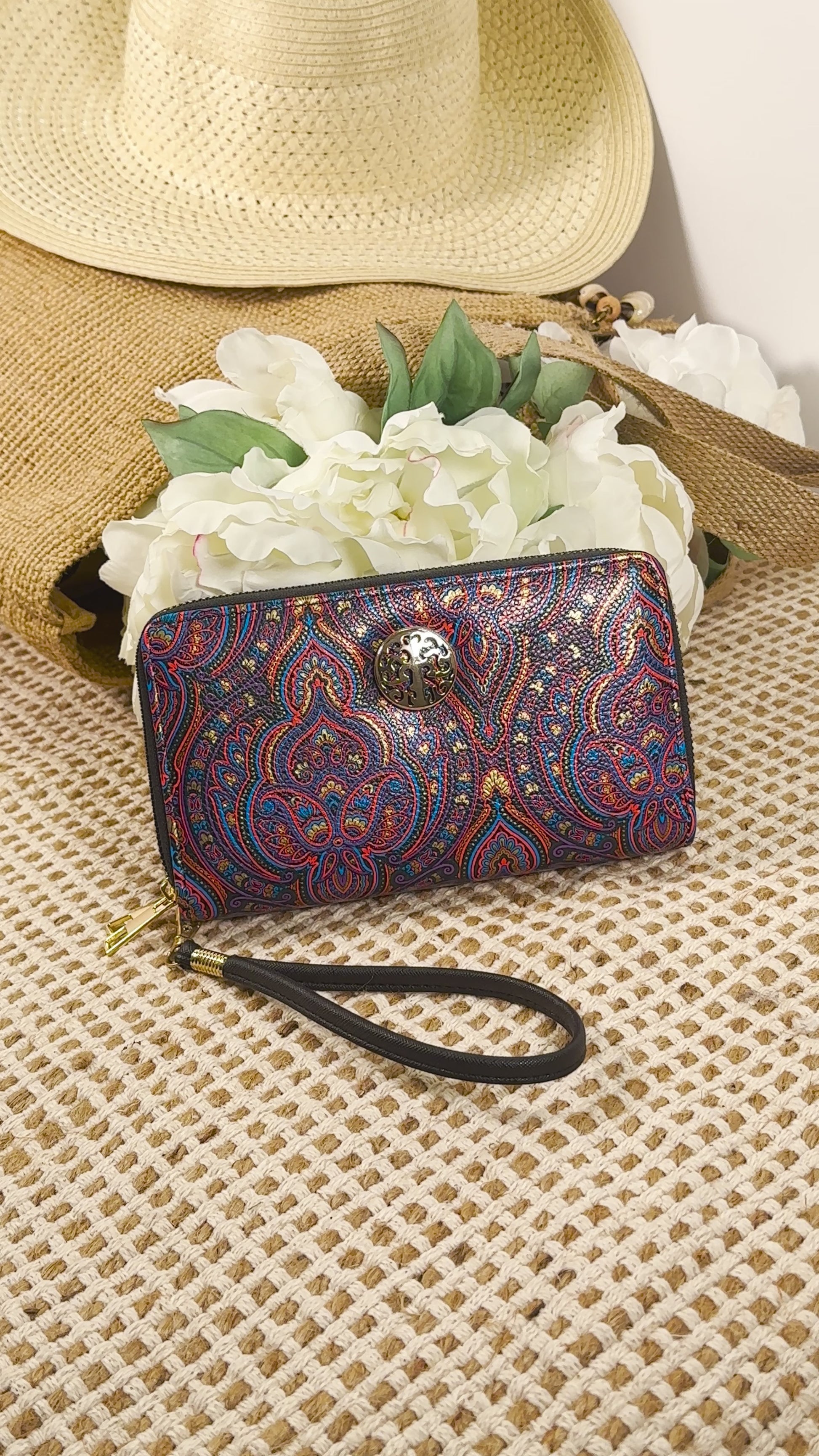 Rebecca & Rifka Paisley Print Medallion Double Zip Wristlet Wallet