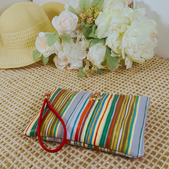 Rebecca & Rifka Multi Stripe Print Medallion Zip Wristlet