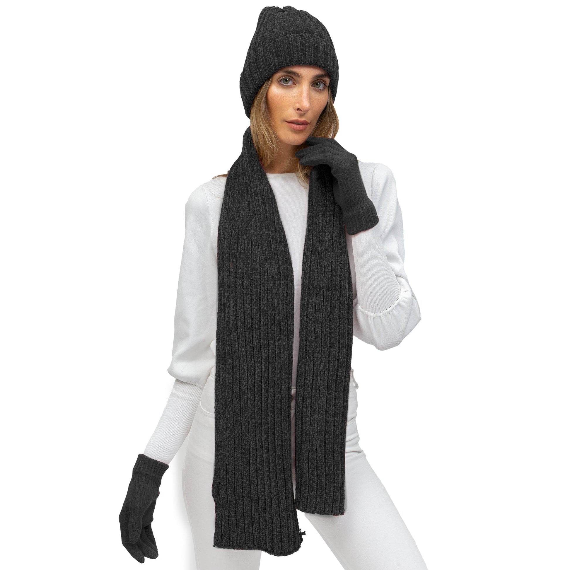 Just Jamie 3-Piece Melange Knit Hat, Scarf, and Gloves Set