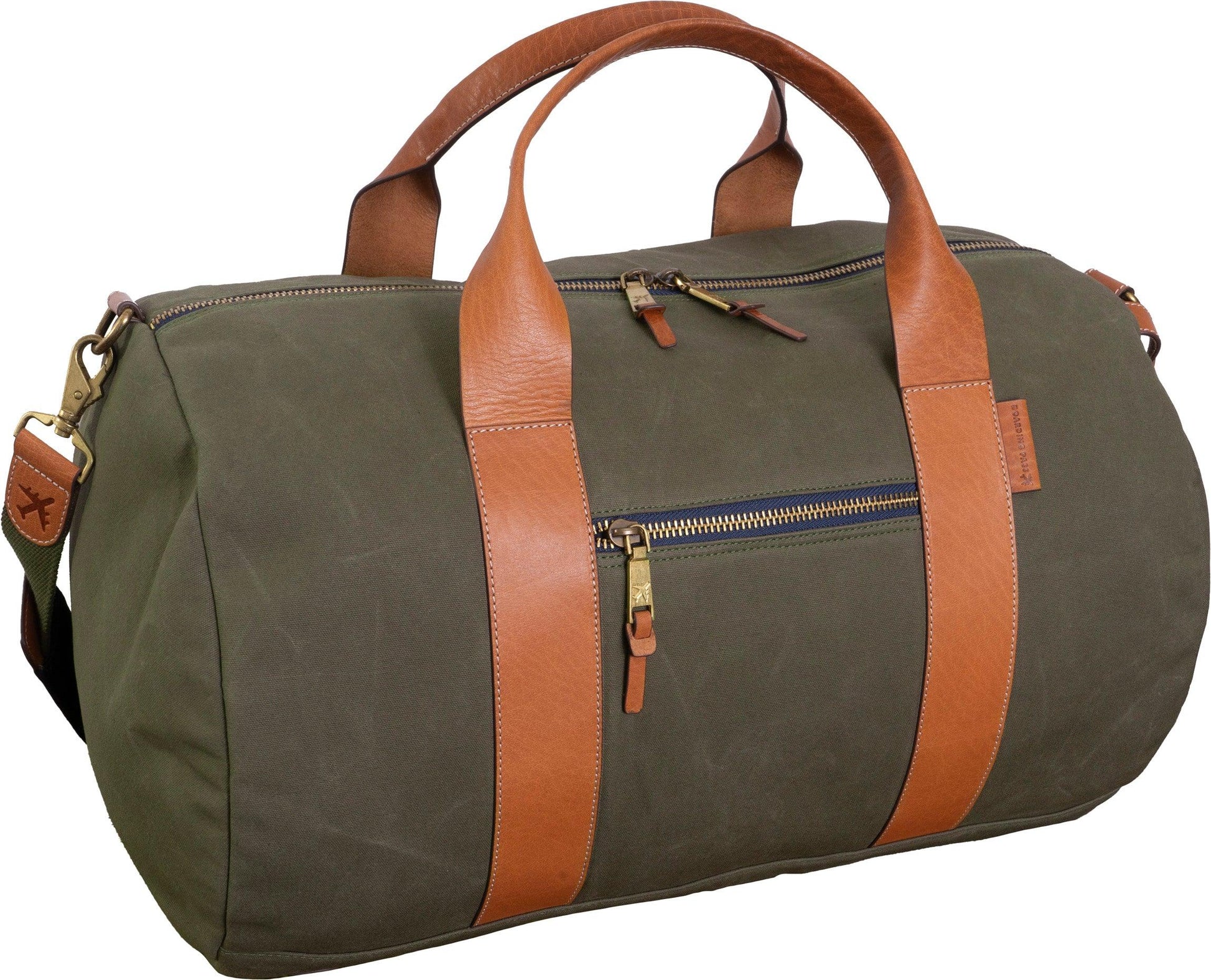 The 21” Voyager 20 oz. Waxed Canvas Duffel combines timeless design with practical features. It boasts a lined interior and includes a dust bag for protection. The duffel is crafted from a 20 oz. waxed canvas body with veg-tanned leather top handles and trim. It features an adjustable and detachable shoulder strap with a burnished logo, metal anti-scratch feet, a front zippered compartment, and an interior zippered compartment for organized storage. This duffel is perfect for stylish and durable travel.